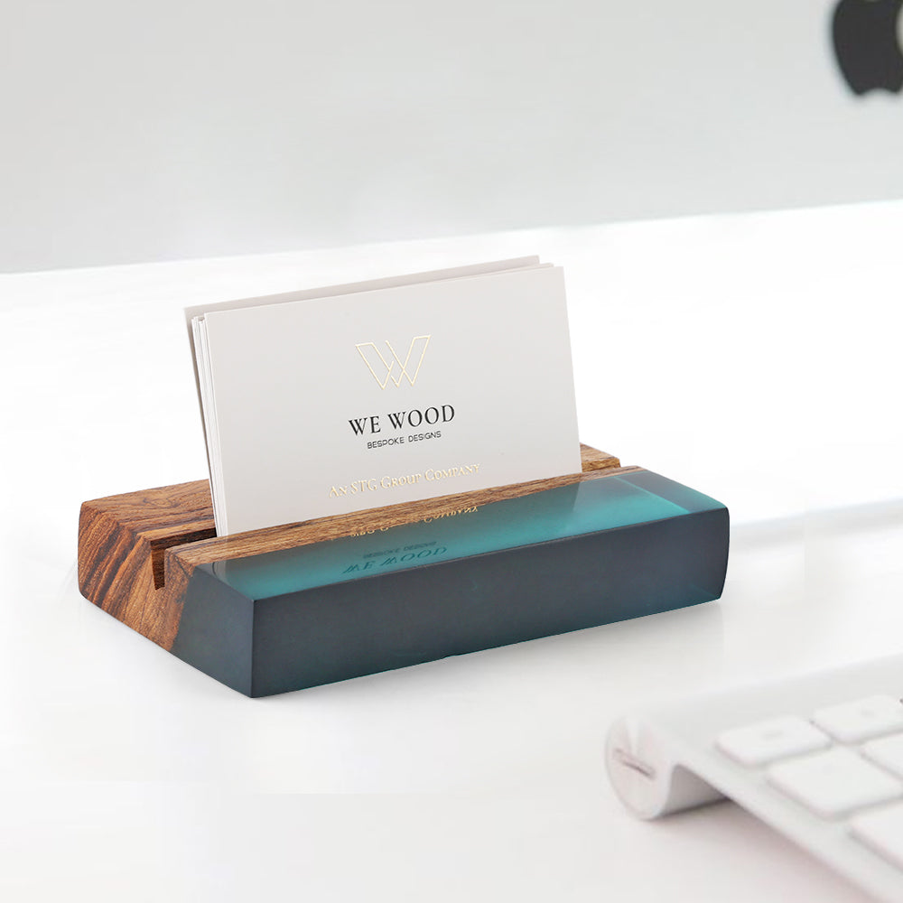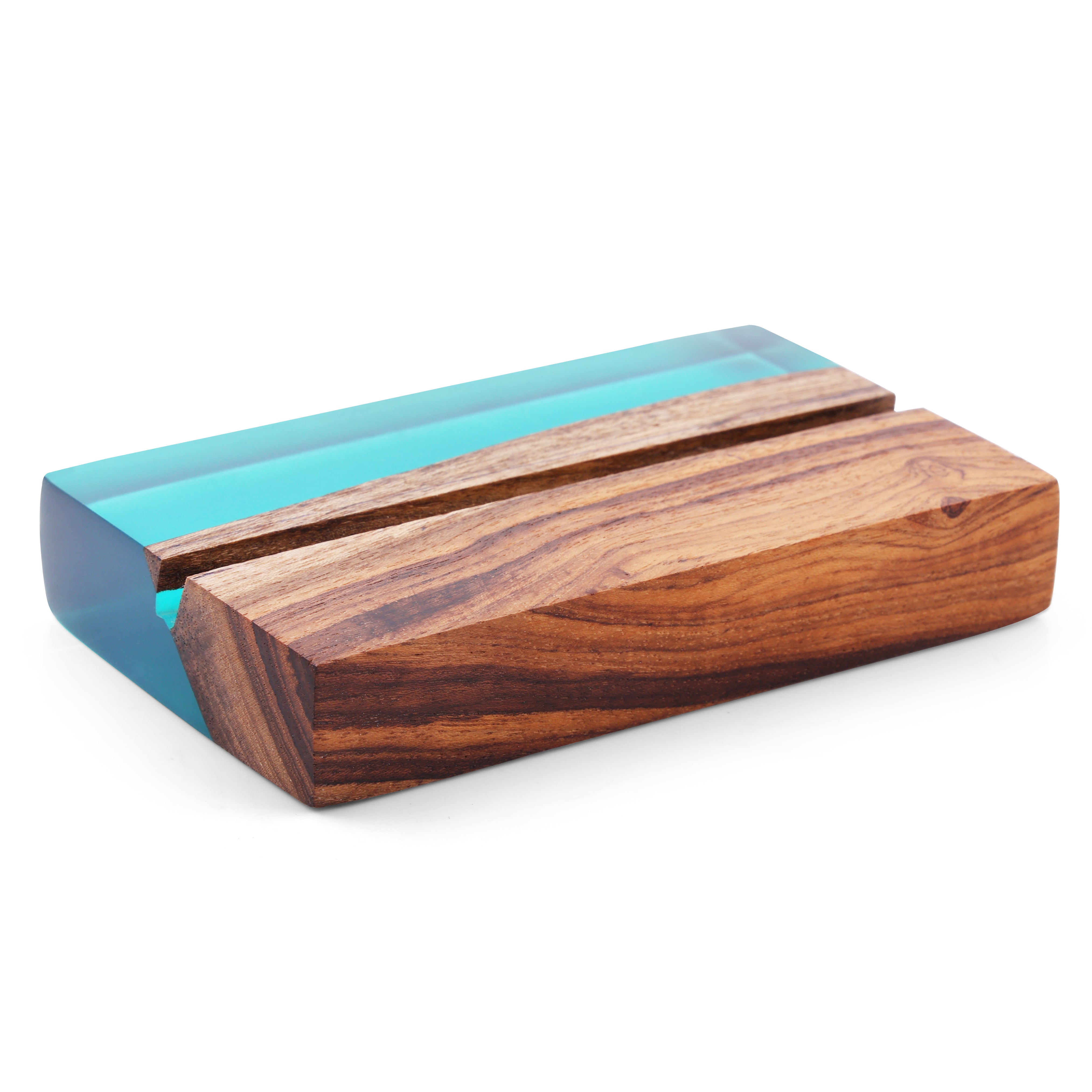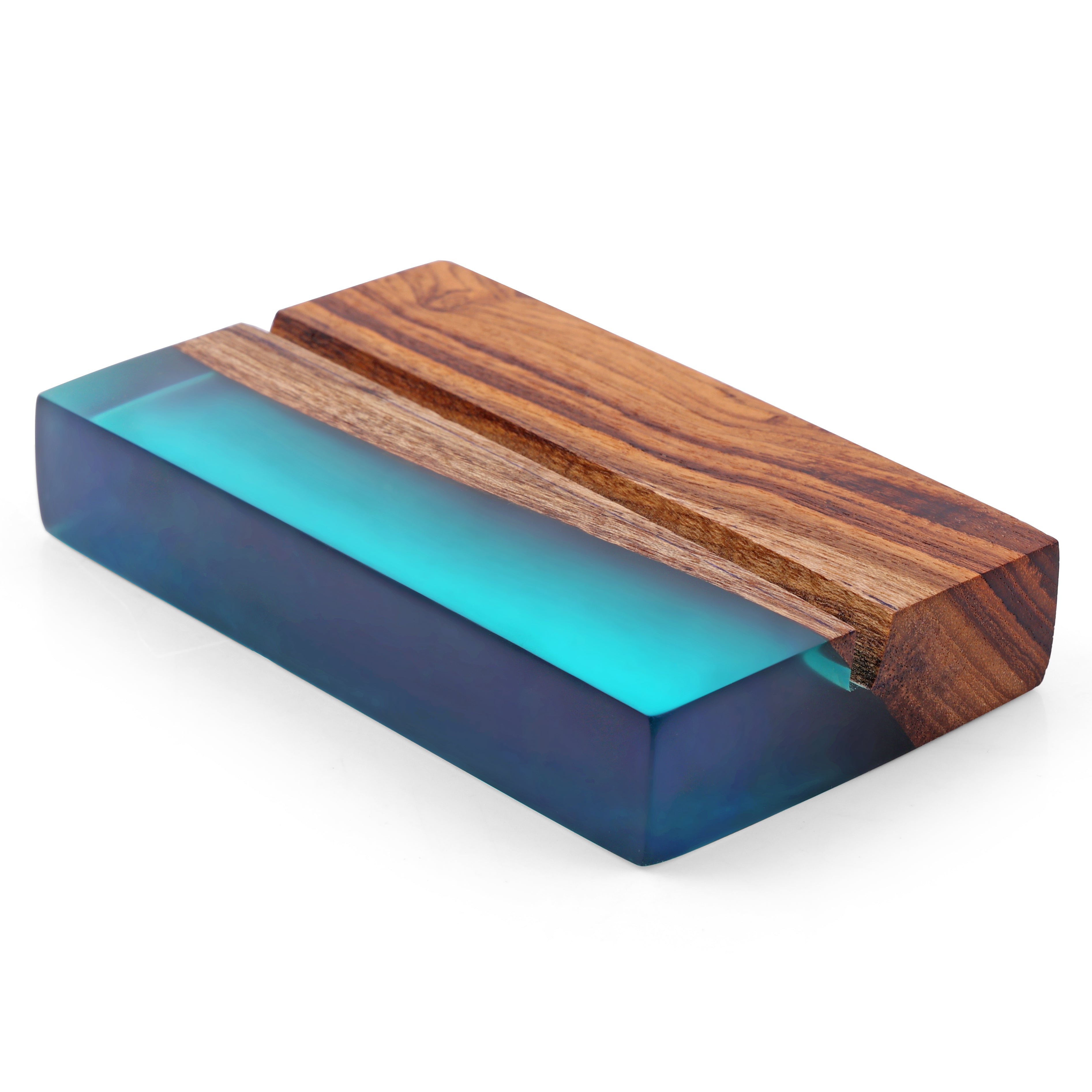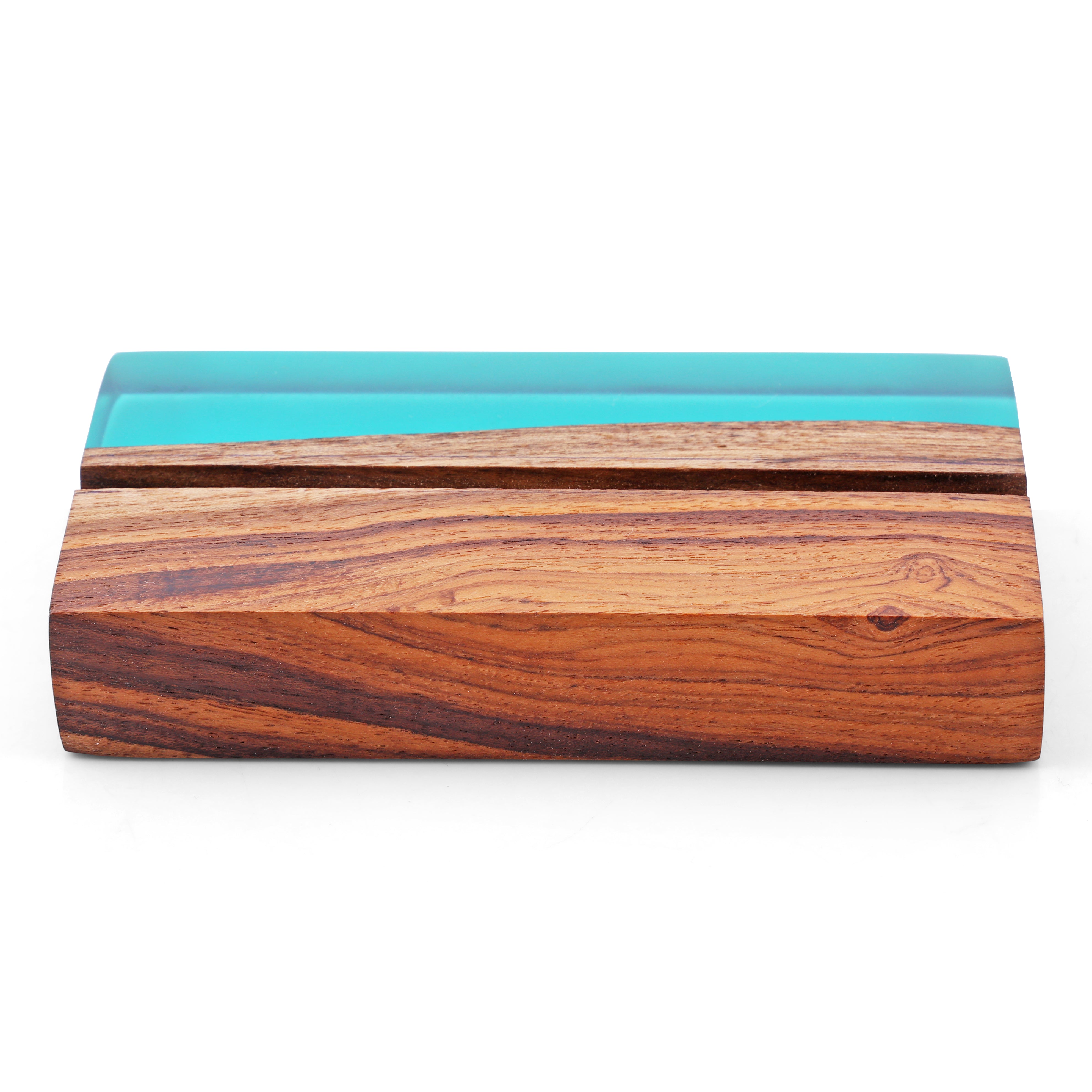Handcrafted Teak Wood & Ocean Blue Epoxy Business Card Holder