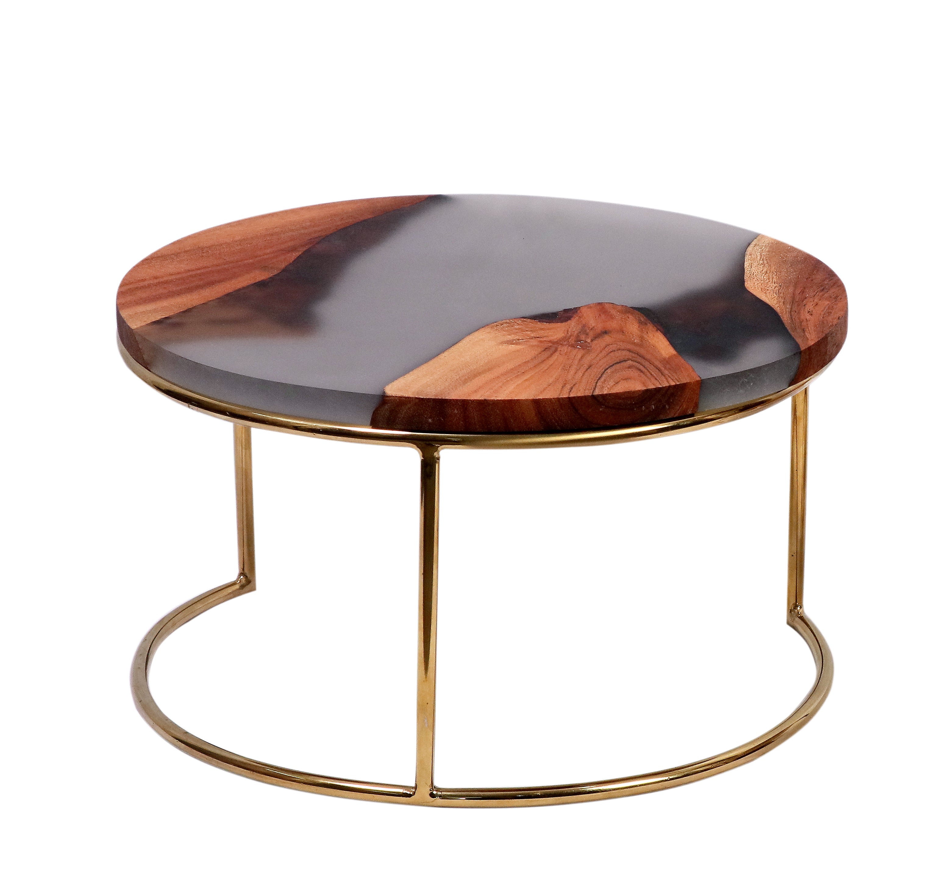 • Natural wood + resin top with rich grain patterns
