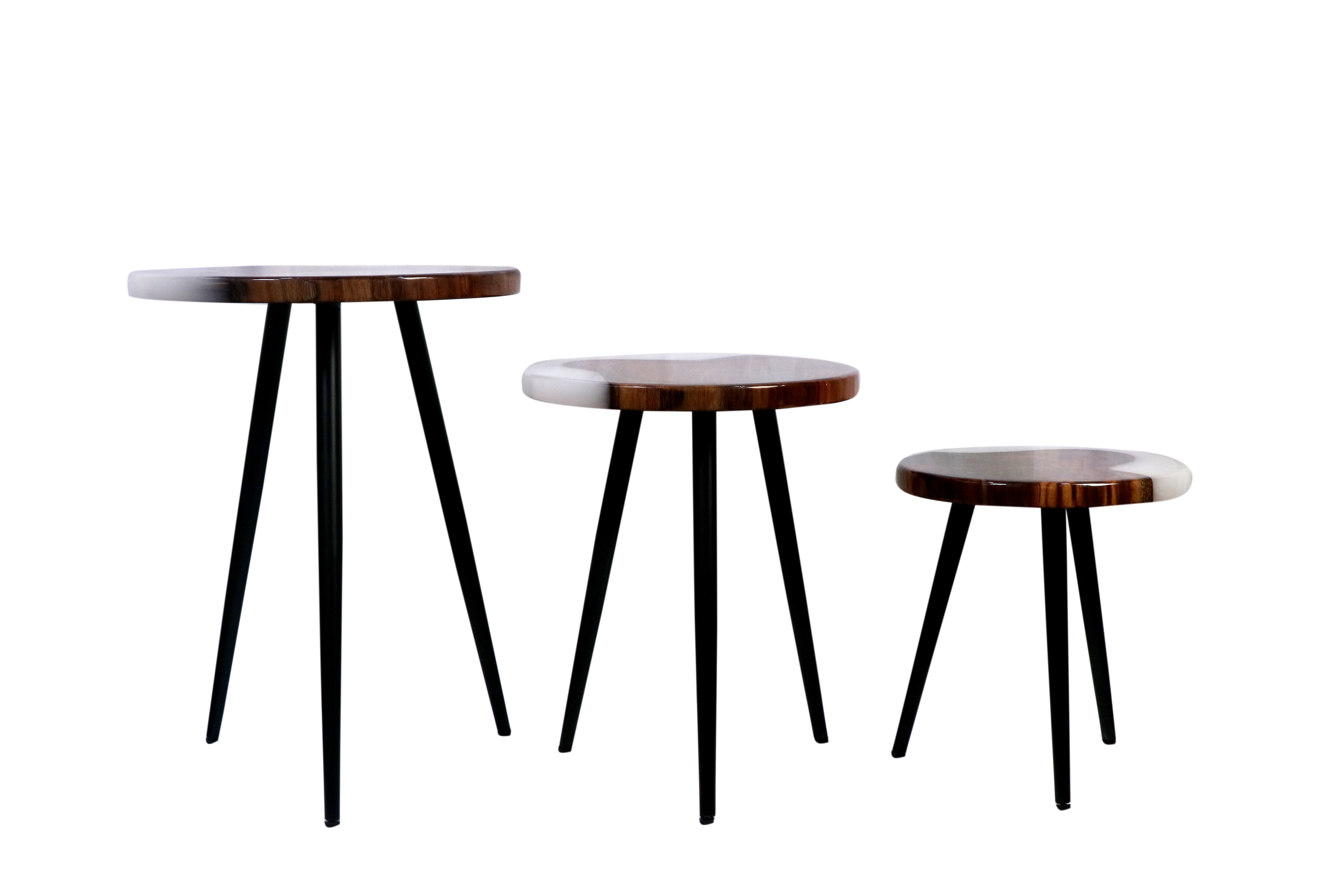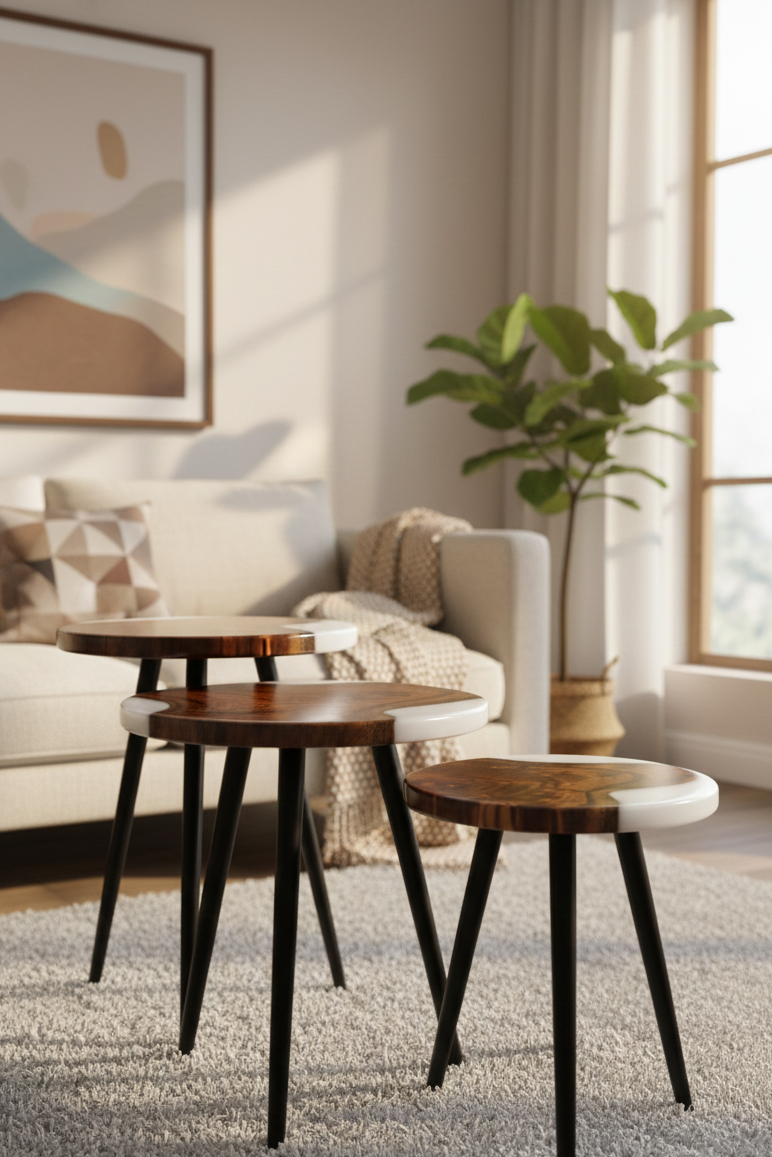 Wood & White Epoxy Nesting Tables – Set of 3 | Handcrafted by WeWood India