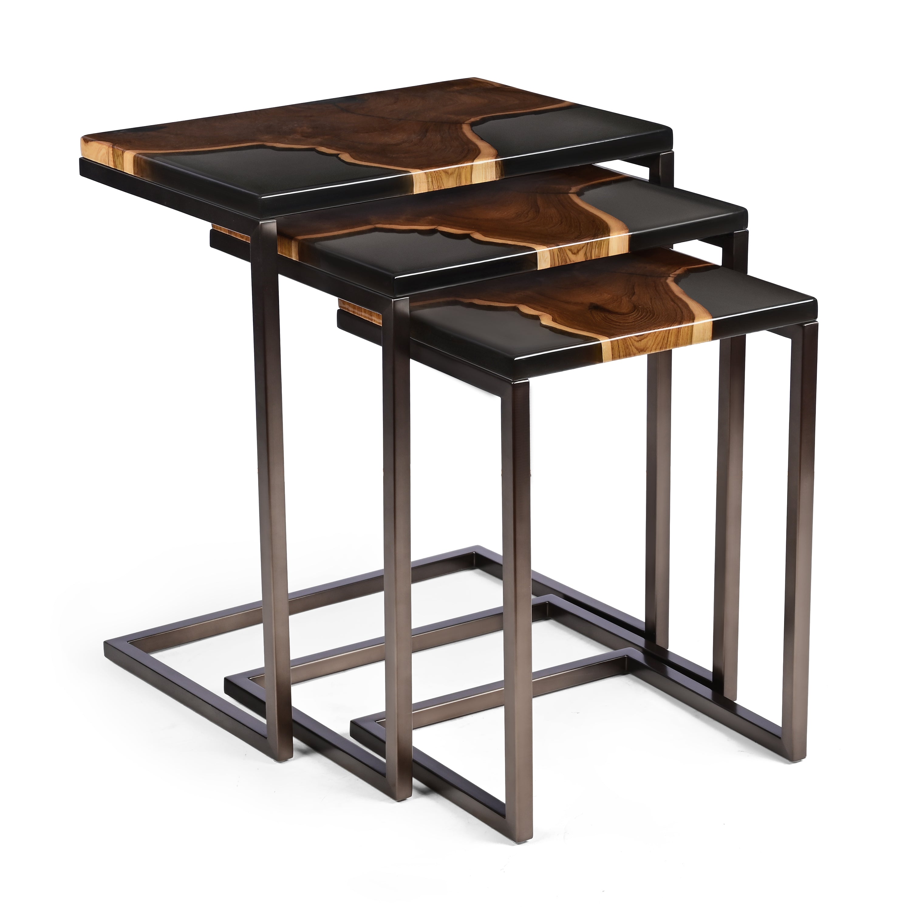 Aurelia Trio Nesting Tables – Wood & Grey Resin