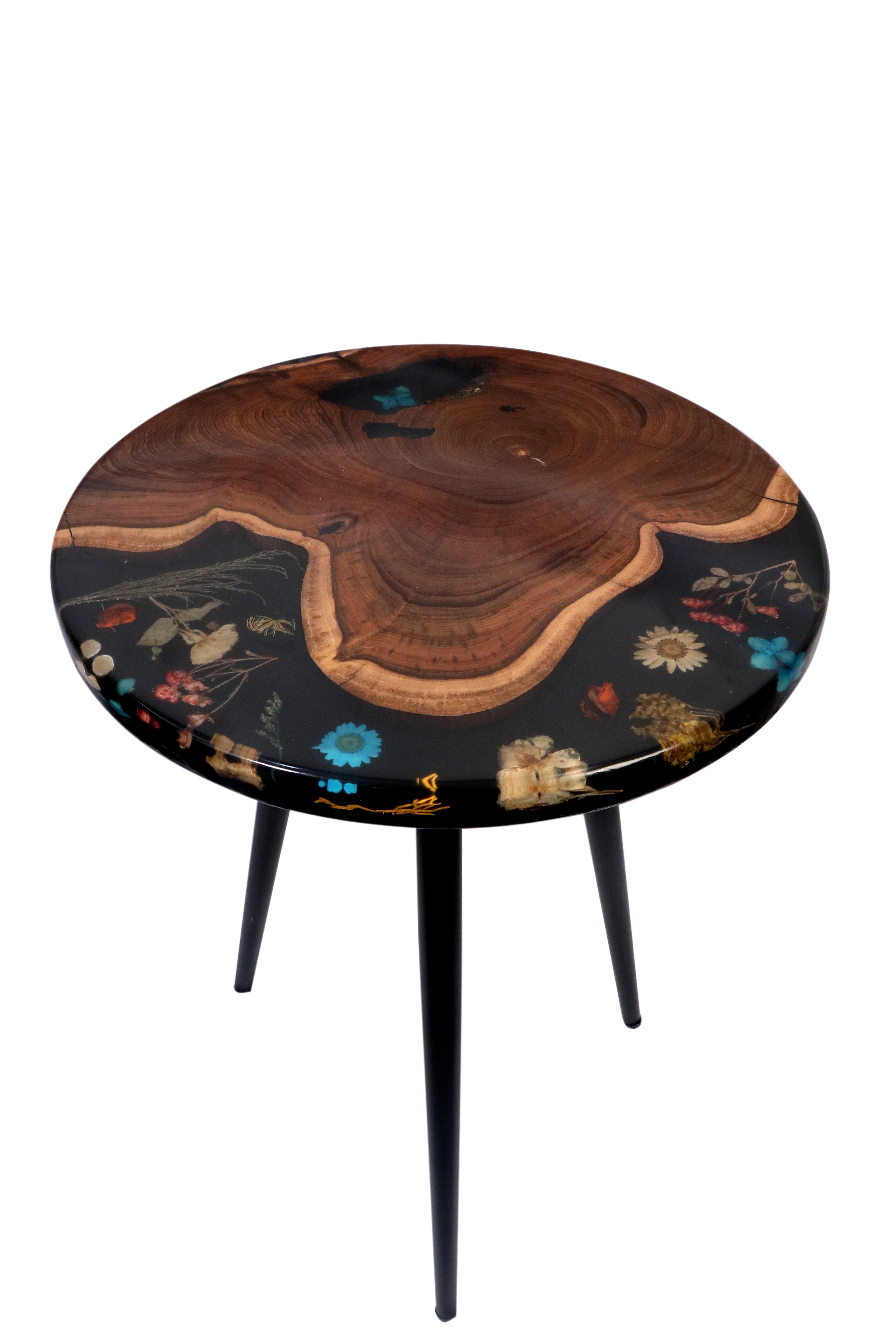 Introducing one of WeWood India’s most artistic creations — the Black Floral Epoxy & Natural Wood Nesting Tables. Each table is handcrafted using: Natural wood slabs with rich grains High-gloss black epoxy infused with real pressed flowers Sleek matte black metal legs The preserved flowers inside the resin create a...